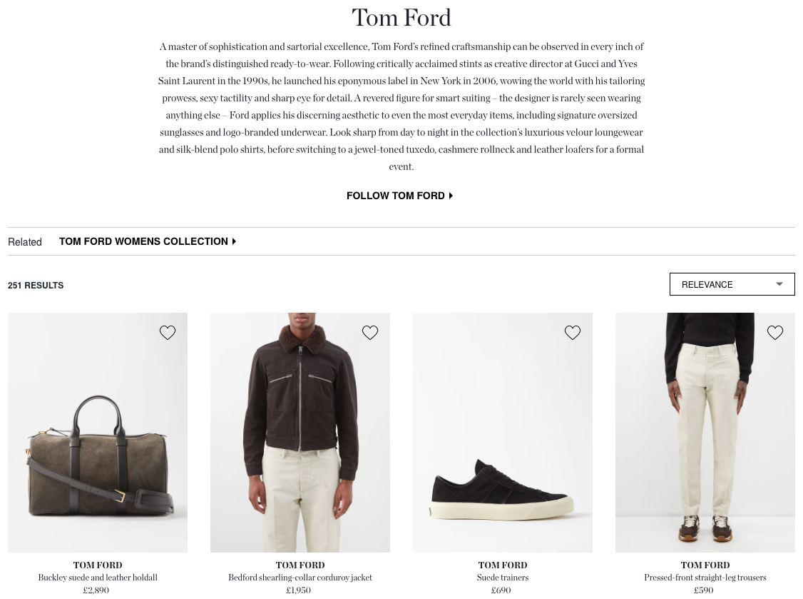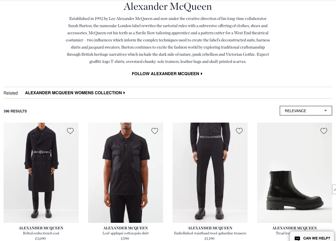As a luxury copywriter, I wrote designer landing page content for MATCHESFASHION's top-selling fashion houses including Balenciaga, Saint Laurent and Alexander McQueen. Using a sophisticated tone, I wrote clear, narrative-led copy woven with well-researched SEO keywords. I added intriguing facts and golden nuggets of information which strengthened each brand’s unique story.