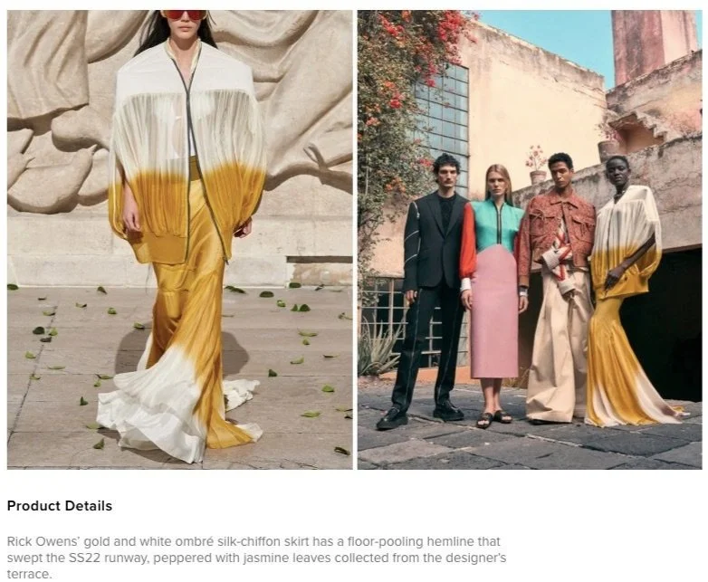 I completed a high daily KPI of 45 fashion product descriptions using inclusive language which considers a gender-neutral audience and culturally sensitive terms. Drawing out each item’s USP (unique selling point), I wrote luxury product copy, no matter how simple or elaborate the piece, to drive traffic, engagement and conversion. My luxury brand copywriting upheld a high standard of trend research and runway inspiration, with specialist knowledge in fabrics, finishes and garment construction techniques.