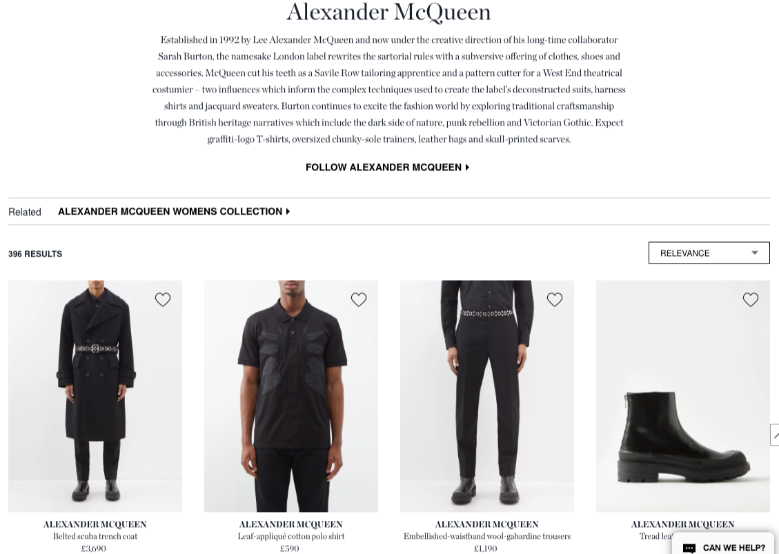 As a luxury copywriter, I wrote designer landing page content for MATCHES' top-selling fashion houses including Balenciaga, Saint Laurent and Alexander McQueen. Using a sophisticated tone, I wrote clear, narrative-led copy woven with well-researched SEO keywords. I added intriguing facts and golden nuggets of information that strengthened each brand’s unique story.